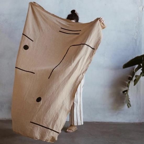 置いておくだけでインテリアのアクセントになるのはもちろんのこと、肌触りもよく身体をさらっと包み込む軽さで、どこにでも連れて行きたくなる1枚。使い方はあなた次第です。