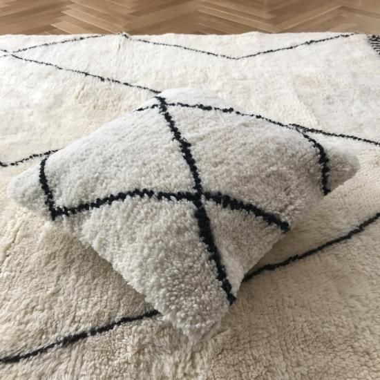 ベニワレンとはモロッコの遊牧民・ベルベル人がベニワレンという地域で手作業で織った伝統的な羊毛ラグのこと。暑いイメージのあるモロッコですが、ベニワレン地方は高地ということもあり冬には雪も積もるほど。そこで育つ羊から採れるウールは厳しい環境で育っているだけあって織物に使用するには最適です。