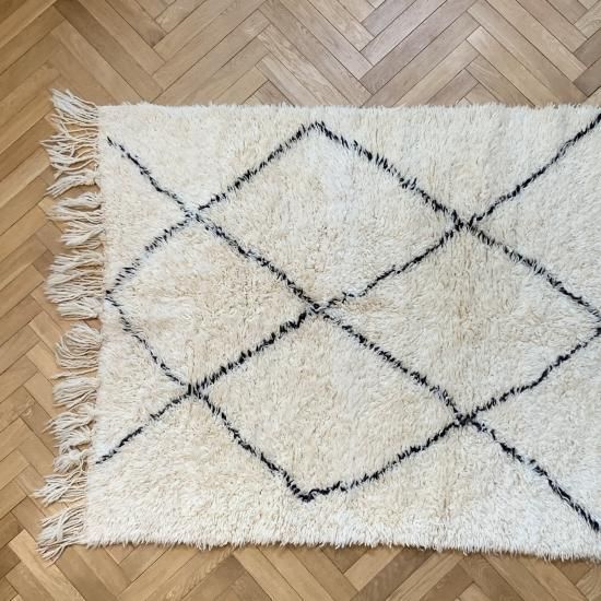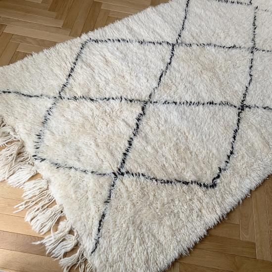 ベニワレンとはモロッコの遊牧民・ベルベル人がベニワレンという地域で手作業で織った羊毛ラグのこと。暑いイメージのあるモロッコですが、ベニワレン地方は高地ということもあり冬には雪も積もるほど。そこで育つ羊から採れるウールは厳しい環境で育っているだけあって織物に使用するには最適です。