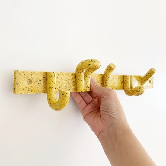 陶器のフックですので重い物は吊るせませんが、壁に取り付けるだけで存在感を放ってくれる魅力的なアイテムです。帽子やタオル、鍵やエコバック.....など軽い物を吊るしてインテリアをお楽しみください。